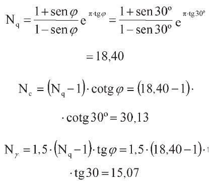 Con respecto a los factores de capacidad de carga, existen expresiones o ábacos que permiten su determinación directa, pudiendo emplearse con suficiente fiabilidad las siguientes: