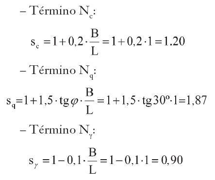A continuación, se indican los facto-res de corrección que se utilizan, para tener en cuenta la influencia de la profundidad de la cimentación y de la forma de la misma: