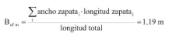 Las cuatro zapatas aisladas del bloque n.o 7 son cuadradas (de dimensiones en planta de 1,60·1,60 m2 y de 2,00·2,00 m2), por lo que el factor B/L adopta valor unidad.