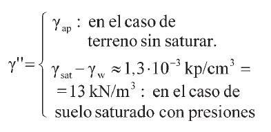 5. ?’’ es el peso específico del suelo para calcular las tensiones efectivas por debajo del cimiento (en caso de terreno sin saturar o en caso de suelo saturado con presiones de agua hidrostáticas).