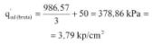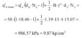 En cálculos con drenaje es muy recomendable emplear tensiones efectivas y aplicar el coeficiente de seguridad sobre la tensión efectiva de hundimiento neta. Por tanto, la presión admisible efectiva bruta, en el caso de carga en faja, será: