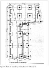 La cimentación es de tipo superficial, de hormigón ciclópeo, formado por zapatas aisladas y vigas riostras en dirección perpendicular a la fachada (figura 3).