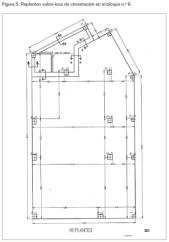 La estructura portante está constituida por pórticos de hormigón armado paralelos a la fachada, con dos crujías en los tres primeros vanos y tres crujías en el cuarto y quinto vanos, que dan al patio de manzana (figura 2). Los forjados son de cerámica armada (con un entrevigado de 50 cm), los cerramientos exteriores se resolvieron con fábrica de ladrillo formando cámara aislante, mientras que para la distribución interior se optó por tabique sencillo.