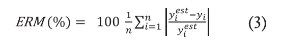 Las variables utilizadas para comprobar la precisión de la red han sido el error cuadrático medio (ECM), calculado según la expresión (2) y el coeficiente de correlación R2 . Los mejores resultados se han obtenido con una red con una capa oculta, con 35 neuronas con un error cuadrático medio ECM = 2,02·10-6 y un coeficiente de correlación R2 = 0,99. (2)
