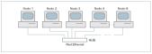 Con objeto de validar la expresión (9) se realizó un conjunto de experiencias sobre una arquitectura como la mostrada en la figura 9. La plataforma de ensayo estaba formada por un conjunto de nodos (PC), construyendo, a partir de un HUB, una arquitectura en estrella con segmentos de cable de 5 m de longitud conectados con RJ-45. Los distintos nodos podrían ser considerados los elementos de un hipotético sistema de control (sensores, actuadores, controladores, etcétera) que intercambian la información de interés a través de la red de comunicaciones.