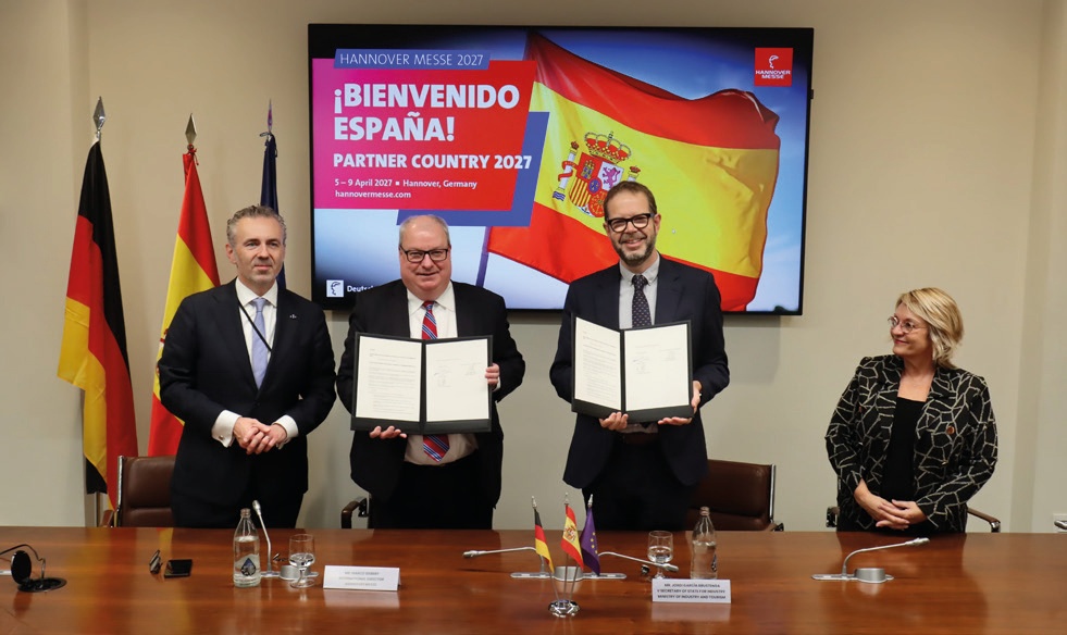 España será el país invitado de Hannover Messe 2027 Hannover Messe 2027 contará con España como “Partner country 2027”. Jordi García Brustenga, secretario de Estado de Industria del Ministerio de Industria y Turismo de España, y Marco Siebert, director de Relaciones Internacionales de Hannover Messe, han firmado, el pasado mes de noviembre, un Memorándum de Entendimiento, en la sede de la Confederación Española de Organizaciones Empresariales (CEOE), en Madrid, en un acto en el que también ha estado presente Thomas Jarzombek, secretario parlamentario del Ministerio de Transformación Digital y Modernización del Gobierno de Alemania.