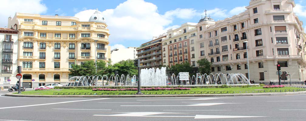 Fuentes situadas en plazas y glorietas. Las fuentes situadas en el centro de plazas o glorietas, que sirven como elemento de articulación del tránsito de peatones y vehículos, tienden a adoptar formas circulares o de polígonos regulares, pues permiten una simetría total para su observación desde cualquier punto (Figura 3), al igual que sucedía con las fuentes situadas en la confluencia de paseos en parques. Cuando se sitúa en el centro de una plaza o glorieta, que no tiene la función de dirigir o articular el tránsito de vehículos o peatones, puede adoptar cualquier forma, quedando únicamente condicionada por aspectos funcionales y presupuestarios.