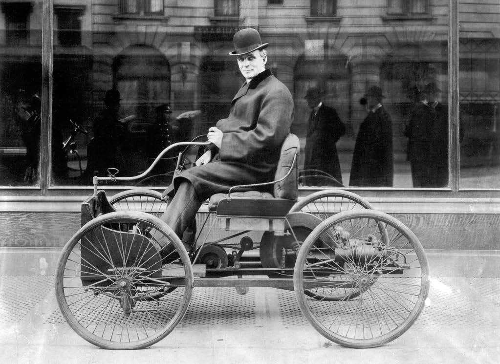 En ese entorno conoció a Thomas Edison, quien se convirtió en mentor y apoyo para sus investigaciones sobre motores de combustión interna. En 1893 Ford construyó su primer motor de gasolina sobre una mesa de madera en su casa. A partir de ese prototipo desarrolló su primer vehículo experimental: el cuadriciclo, terminado en 1896.