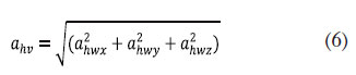 donde es la raíz cuadrada de la suma de los cuadrados de las componentes de la aceleración ponderada en frecuencia en los tres ejes: