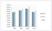 En cuanto a la evolución del conjunto de los trabajadores de la Unión Europea que indican estar expuestos a vibraciones por máquinas o herramientas, al menos una cuarta parte del tiempo, se puede observar en la figura 2 que entre los años 1995 y 2010 se han producido solo pequeñas variaciones.