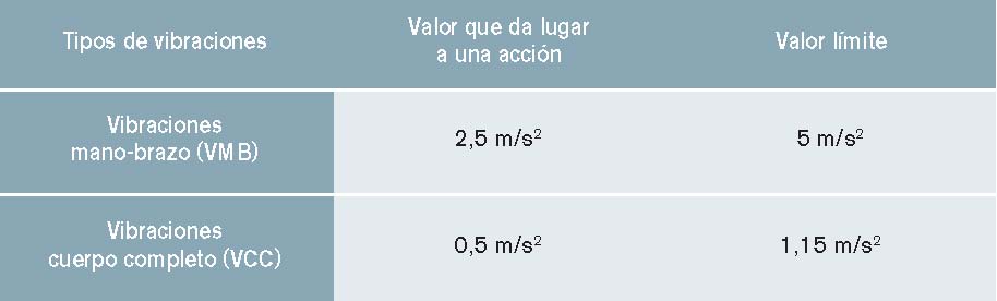 Pérez, G. (2010), Exposición Laboral a vibraciones. Ficha Técnica FT-01/2010, Instituto de Seguridad y Salud Laboral (ISSL), Región de Murcia. España. Disponible en: http://www.carm.es/web/pagina?IDCONTENIDO=6645&RASTRO=c721$m&IDTIPO=100