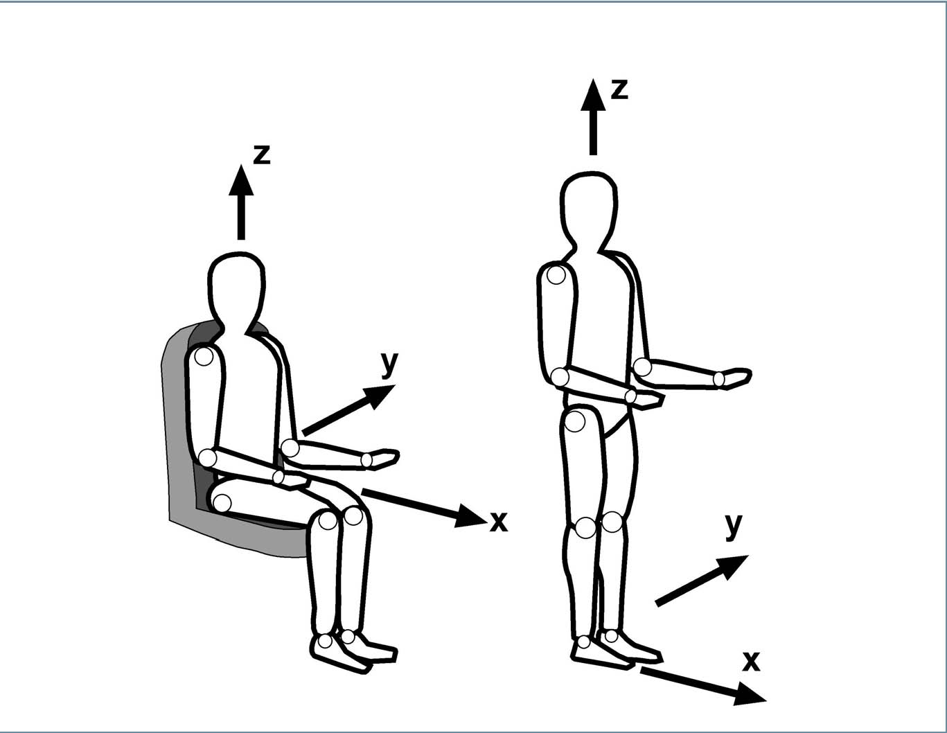 Cualquier equipo de trabajo capaz de originar vibraciones genera multitud de aceleraciones en muchas y distintas direcciones, y resulta inviable la medición de todas y cada una de las aceleraciones producidas en todas las direcciones posibles. Por ello, las aceleraciones se miden en su proyección sobre tres ejes ortogonales, X, Y, Z (Pérez, 2010). En este sentido y a modo de ejemplo, la Norma UNE-EN ISO 20643 (2008) puntualiza que no incluye otras direcciones de las vibraciones distintas de las translacionales.