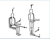 De esta forma, los sistemas principales de coordenadas para medir VCC y VMB interesa ligarlos al cuerpo humano y no a referencias espaciales, tal como se muestra en las figuras 6 y 7.