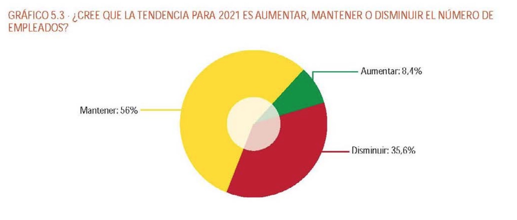 La técnica de recogida de información fue una encuesta online a través de un cuestionario autoadministrado. El trabajo de campo se realizó desde el 11 de mayo hasta el 4 de junio de 2020. Uno de los datos más destacados en materia de empleo, es que el número medio de empleados antes de la crisis generada por la emergencia sanitaria era de 14,1 trabajadores, y disminuyó a 11,7 trabajadores después de la crisis (en el momento de realizar la encuesta). El 22,6% de las firmas y despachos vieron disminuir el número de sus trabajadores, el 75,5% lo mantuvo y tan solo el 1,9% lo aumentó. Las expectativas para el 2021 muestran que el 24,3% de las firmas y despachos encuestados consideran que disminuirá el empleo, el 67,4% lo mantendrá y el 8,3% lo aumentará.