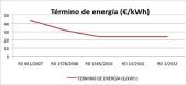 – El precio de la energía en España ha sufrido dos grandes subidas en los últimos años. En primer lugar, el término de energía aumentó en 2010 el 27% para suministros en baja tensión (tarifa 3.0 A) y el 73,3% si se trata de suministros en alta tensión con la tarifa 3.1 A. Por otra parte, el término de potencia aumentó en el año 2012 el 42,5% para contratos en alta tensión (tarifa 3.1 A) y el 62,2% para baja tensión (tarifa 3.1 A).