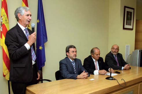 Seguidamente, intervino el decano Juan Ignacio Larraz Pló que dijo: «Gracias, Juan Valenciano, por tus desvelos como delegado del Colegio. Esta nueva sede viene a significar nuestro mejor deseo de integrar Aragón y al colegio como aglutinador de todos los ingenieros técnicos industriales dentro del territorio. Estamos en un proceso de modernización de los colegios profesionales y llevamos algunos pasos por delante, como es el visado electrónico y la conexión por videoconferencia de las tres sedes: Zaragoza, Huesca y Teruel. La complejidad organizativa que nos demanda el futuro será muy difícil de afrontar para colegios pequeños y el establecimiento de Consejos Autonómicos resulta indispensable para afrontar, de forma mancomunada, la capacitación necesaria a todos los niveles.