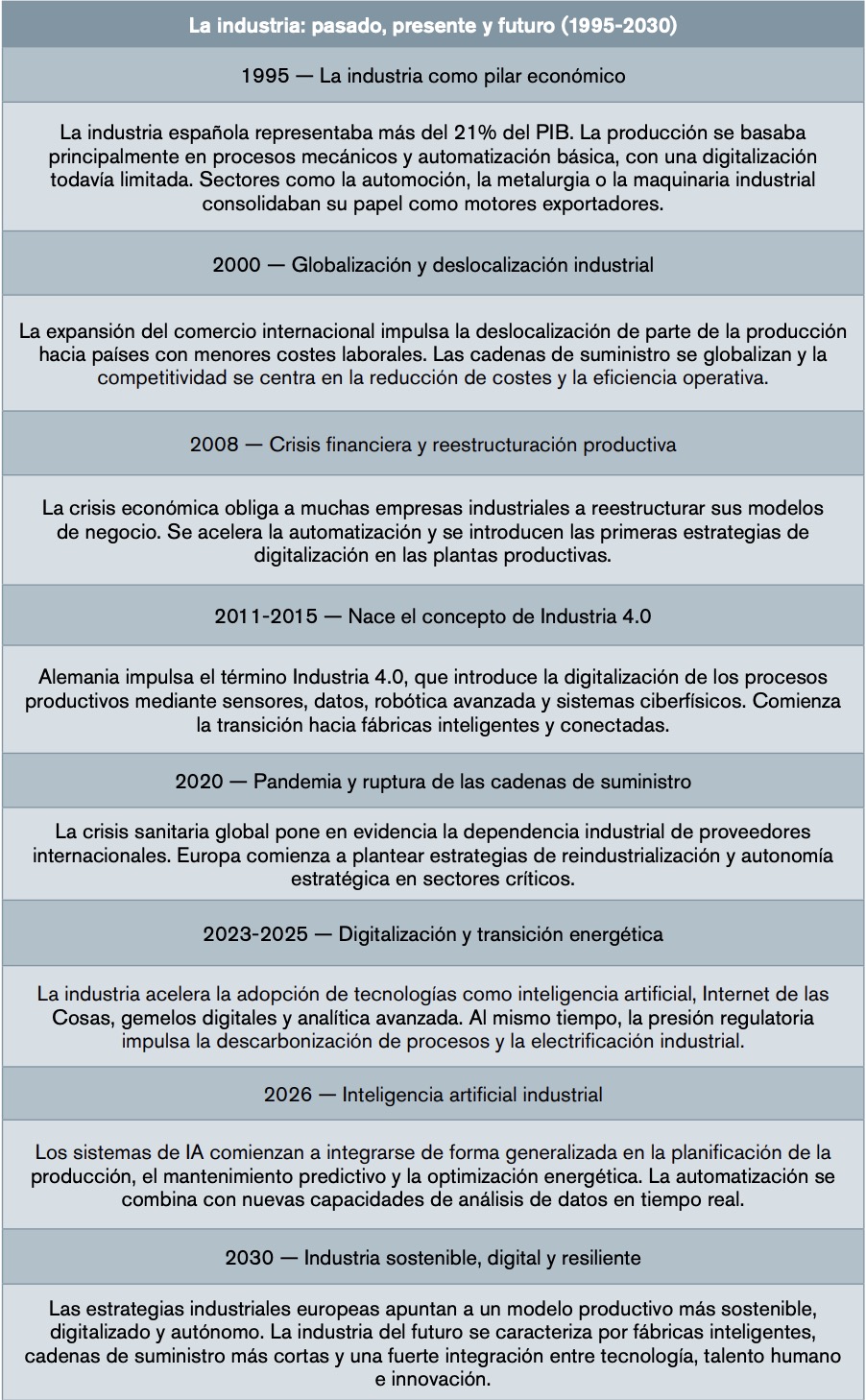 En un mundo cada vez más tecnológico y competitivo, el futuro de la industria no dependerá solo de las máquinas, sino de la capacidad de las empresas y de la sociedad para formar el talento, impulsar la innovación y construir un modelo productivo más sostenible, resiliente y preparado para los desafíos del siglo XXI.