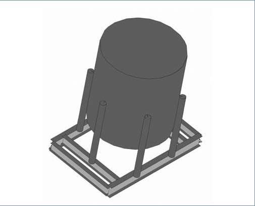 Inicialmente, la oficina de ingeniería propone como solución para soportar el equipo una viga central apoyada en los muros de hormigón del depósito (figura 4).
