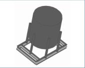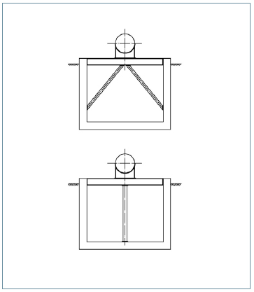 En este ejemplo se presenta un equipo horizontal apoyado en dos muros de un depósito de hormigón. El fabricante suministra el equipo con tres apoyos.