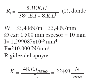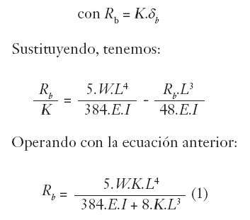 Por ejemplo, para la viga continua de la figura 2, se podría sustituir el apoyo R2 por una columna de inercia despreciable frente a la de la viga, pero con sección transversal y longitud tal que su acortamiento elástico sea el mismo que el del resorte: