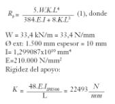 El fabricante del equipo proporciona los siguientes datos: Peso total equipo en operación (peso propio + contenido) = 200 kN. Diámetro exterior: 1500 mm, espesor = 10 mm