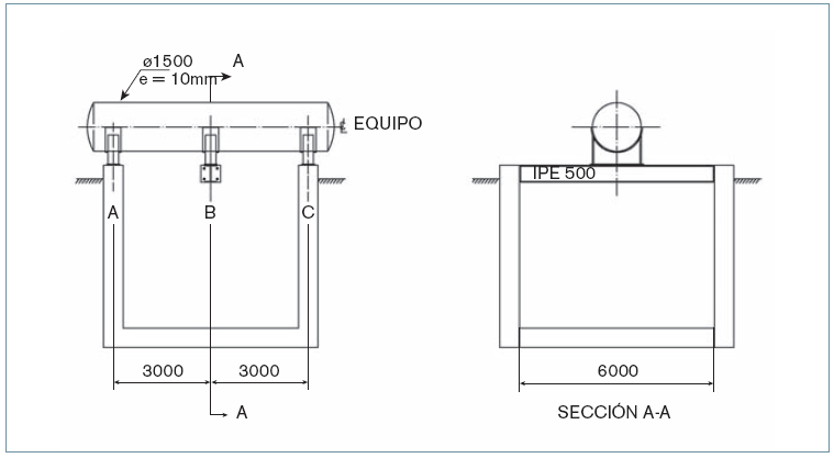 La oficina de ingeniería diseña un entramado de vigas IPE 300 para sopor-tar el equipo tal como se indica en la figura 6.