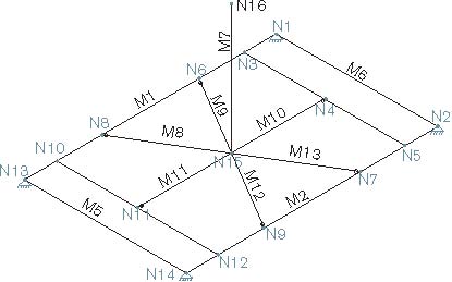 En la figura 7 se indica el modelo de ordenador creado para este ejemplo, donde se han indicado la numeración de nodos y barras.
