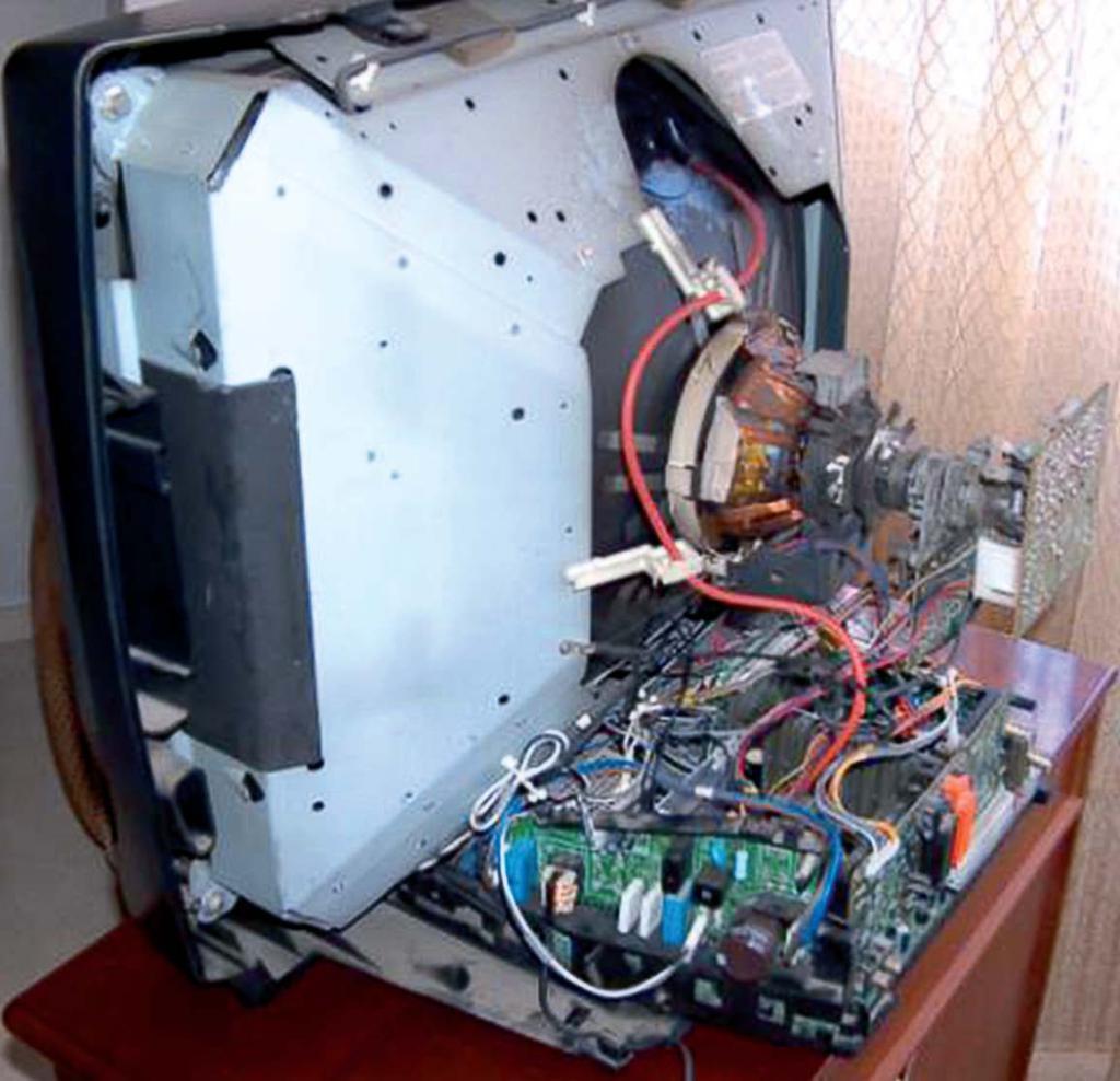 El televisor de color es un buen ejemplo de sistema electrónico complejo, lo que demuestra la figura 1 pues en su interior nos encontramos con una gran cantidad de dispositivos y circuitos electrónicos cuya finalidad es en resumen captar una señal electromagnética de una antena y transformarla en imágenes legibles para nuestro cerebro. Para lograr este objetivo que parece simple, la señal electromagnética tiene que ser captada, filtrada, descodificada, sincronizada y tratada hasta que sea capaz de activar un tubo de rayos catódicos (TRC) o modernamente una pantalla LCD o una pantalla de plasma.