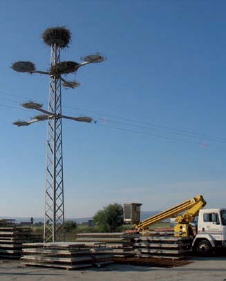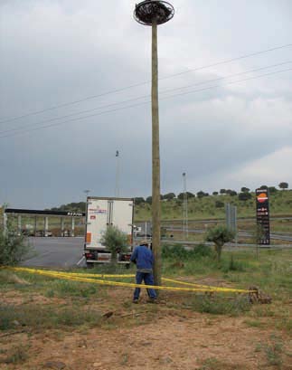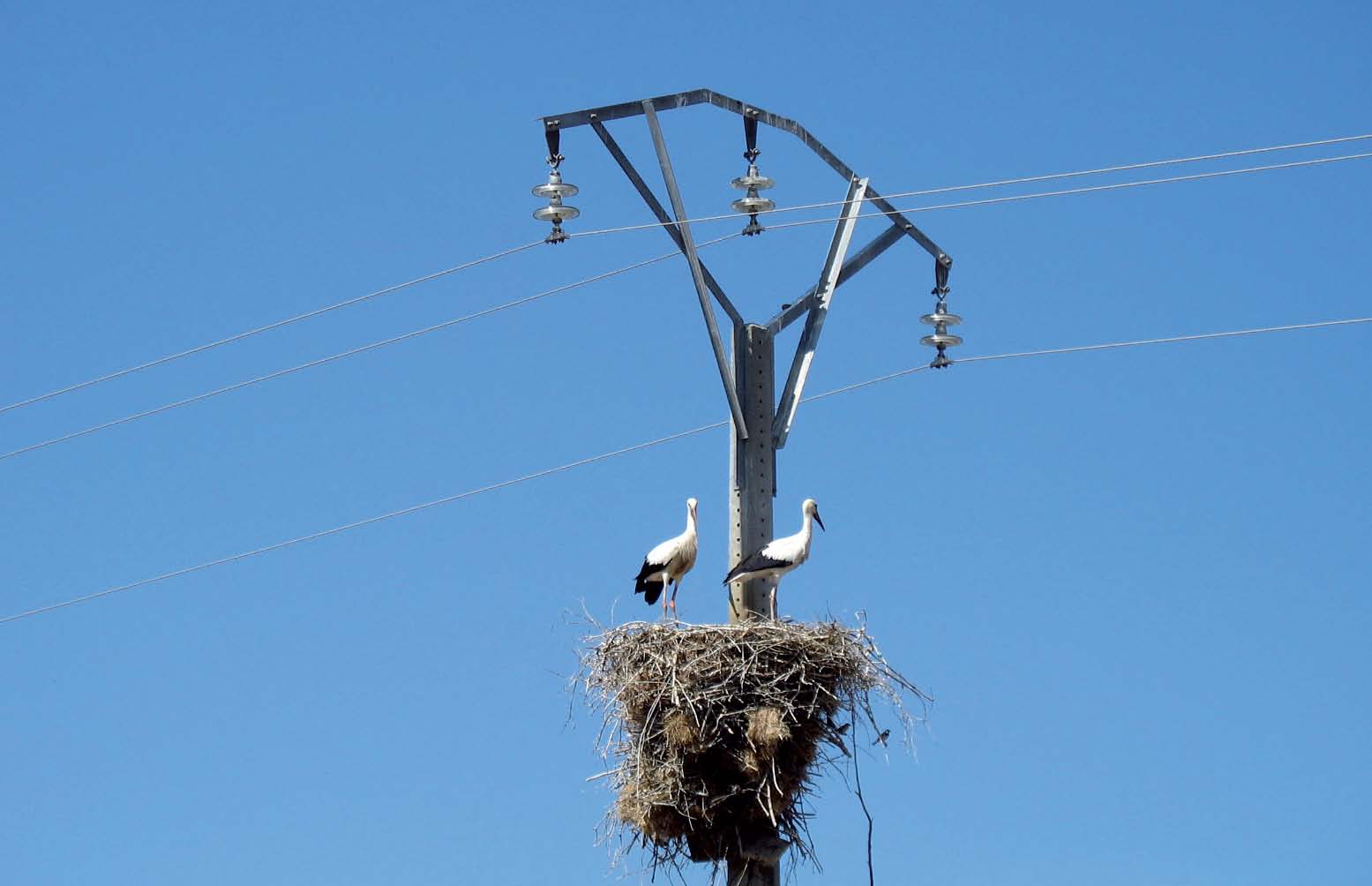 In many areas of the Iberian Peninsular, the White Stork (Ciconia ciconia) is the foremost cause of interruptions in the power supply in medium and high voltage aerial power lines, either directly through electrocution of the stork, or indirectly caused by their nests. In the past, during the Spring and Summer, the stork nested in Europe and Asia, building large nests, when Autumn arrived, they migrated to Africa, India and Indo-China. In recent years, however, probably due to climate change, to the possibility to have a year round food supply in landfill sites, or to the protection afforded this species, the White Stork is choosing not to migrate, and stays permanently in the same place. The resulting situation, has caused the electrical companies to adopt measures to resolve, or minimise the impact of the stork on electrical power lines. The primary objective has always been to respect the environment, however the electrical companies must guarantee a quality power supply which responds to today’s social and administrative demands.