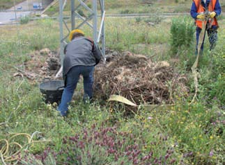 c) Se tira al suelo el nido que se va a eliminar, del que se recoge parte del sustrato y se lleva al nuevo nido. Posteriormente se ubican los cigoñinos en su nuevo nido (figuras 31 y 32).