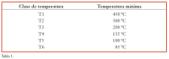 Por otra parte, los materiales eléctricos a instalar en este tipo de locales deberán ir marcados con la clase de temperatura asignada, esto no es otra cosa que una clasificación en función de la máxima temperatura que puedan alcanzar (tabla 1).