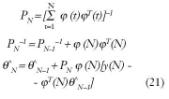 Partiendo de (17), donde N indica el número de datos, se puede actualizar la estima tras la llegada de un nuevo dato; éste es el llamado método de identificación mediante mínimos cuadrados recursivos (RLS), definimos:
