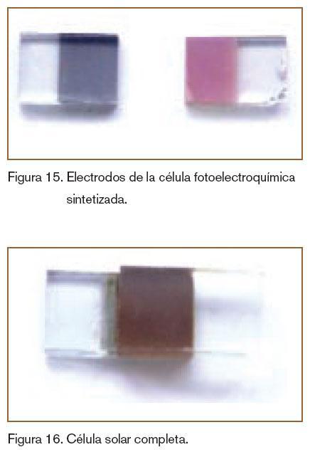 En las investigaciones llevadas a cabo hasta ahora, se ha obtenido una célula de colorante en la que se ha conseguido sustituir el electrolito líquido (acetonitrilo) por un sólido (figura 15 y figura 16), formado a partir de polietilenglicol, I2 y LiI, obteniendo una eficiencia del 1.6% con una iluminación de 100 Wm–2.