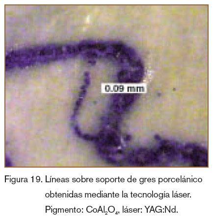 No obstante, un campo todavía no explotado hasta ahora ha sido la potencialidad de la tecnología láser en cuanto a conseguir buenas definiciones en el dibujo (al nivel próximo de una fotografía), junto con el poder calorífico que se alcanza (al nivel del plasma), lo que per-mite conjugar la realización de dibujos y relieves, en muchos casos imposible de obtenerlos a través de los métodos convencionales, al mismo tiempo que se consigue sintetizar el pigmento. Esto, junto con la utilización del software correspondiente así como la facilidad de mantenimiento hacen que esta tecnología abra nuevos horizontes al diseño cerámico.