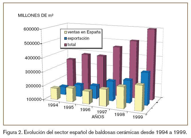 Este auge investigador en al industria cerámica centra sus raíces en la pasada década de los noventa, en la cual se produjo un gran desarrollo del sector cerámico, creciendo y modernizándose (figura 2). Dicho sector empezó a asumir mayores riesgos tecnológicos y comenzó a ser consciente de la necesidad de adquirir mayor conocimiento, provocado por la competitividad, así como por el intento de obtener mayor calidad en sus productos, de cara a la exportación. También aparecen unos requerimientos ambientales en sus ciclos productivos, implantados por la Unión Europea.