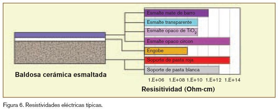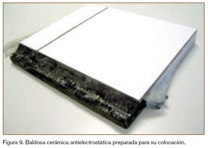 Existen muchos lugares donde la acumulación de carga eléctrica puede resultar peligrosa, entre los más comunes se encuentran los almacenes de explosivos, hospitales, quirófanos y zonas donde se encuentran implantados instrumental de alta actividad eléctrica. En todos estos casos no es tan conveniente utilizar las baldosas cerámicas tradicionales ni otros recubrimientos que resulten ser aislantes eléctricos, ya que provocan la creación de cargas eléctricas estáticas. A modo de ejemplo, en la figura 6 se indican los distintos valores de resistividad típicos de las diferentes partes de una baldosa cerámica (soporte cerámico, engobe y esmalte).