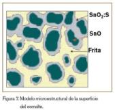 El mecanismo de conducción en este caso está basado en la formación de los denominados canales de conducción o zonas de mayor conductividad en el esmalte, debido a que el sistema semiconductor de SnO2:Sb se forma en al superficie de las partículas de SnO2 (figura 7).