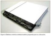 Para favorecer su colocación, todo lo anteriormente descrito se ha introducido ya en el diseño final de la baldosa cerámica antielectrostática, quedando ésta tal y como se puede observar en la fotografía de la figura 9.