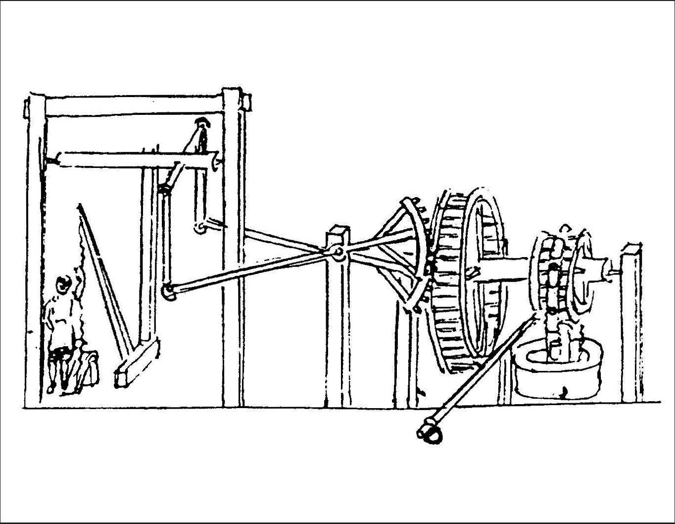 1. La máquina de vapor de Savery es una copia de lade Jerónimo de Ayanz a la que aplica la carga negativa en la aspiración, algo que no funcionaba bienal no tener condensador separado. Es posibleque Jerónimo de Ayanz conociera este problemay, por eso, la alimentación de su máquina de vaporse hacía desde una altura superior y garantizar mejor NPSH. La de Jerónimo de Ayanz, siendo anterior,es superior a la de Savery, y además incluye la posibilidad de colocar varias máquinas en serie paragrandes alturas.