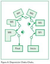 Chaku-Chaku es una disposición en planta de los medios productivos en forma de U o herradura, (figura 8). Es la disposición ideal para reducir los movimientos de los operarios y para racionalizar el flujo de materiales durante su proceso de fabricación.