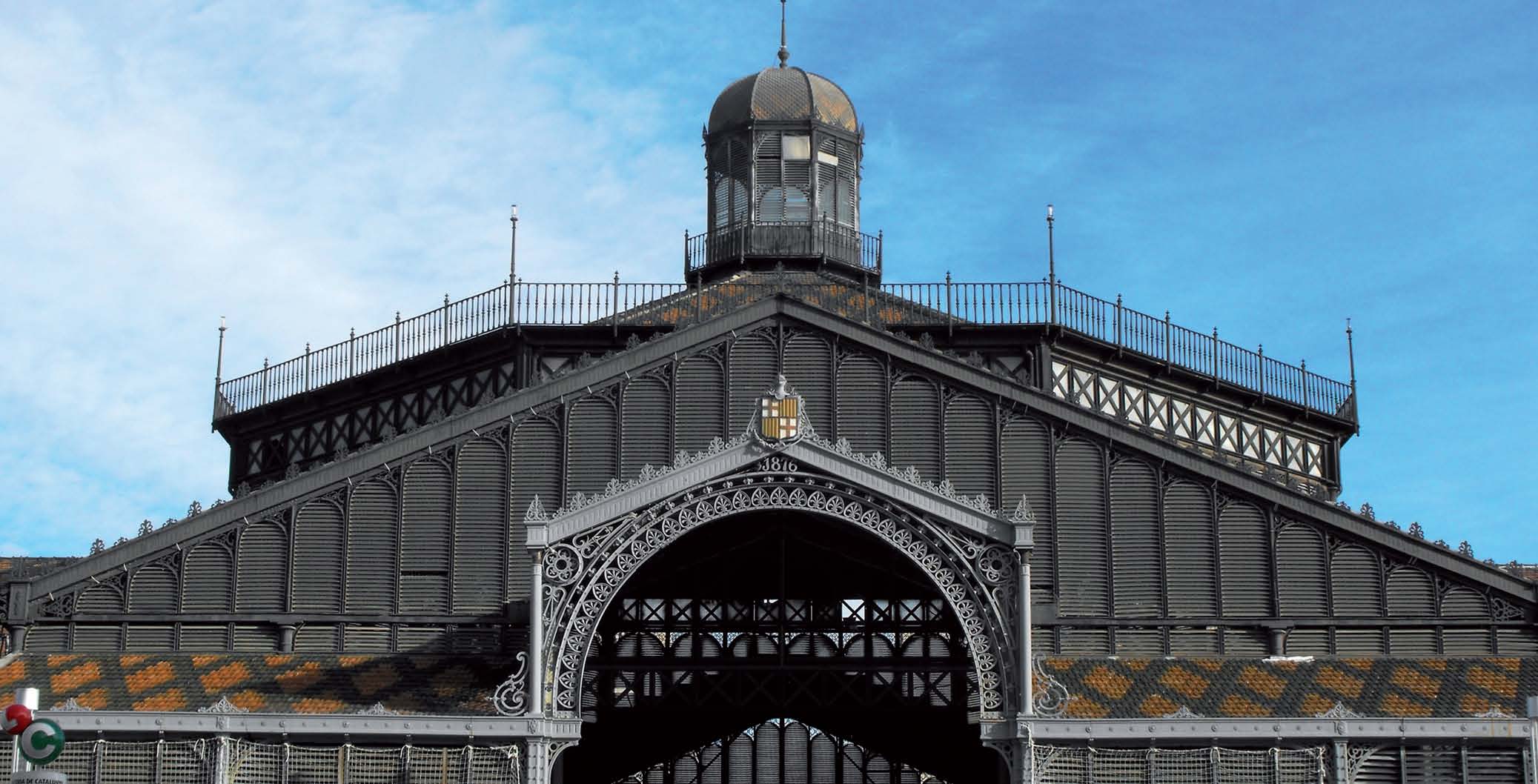 En cuanto a los mercados, el prototipo europeo era el de Les Halles, en París, que fue imitado por toda nuestra Península. En Madrid se levantaron los desaparecidos mercado de la Cebada y de los Monteses (1870-1875), mientras que en Barcelona destacan el del Born y el de Sant Antoni. El primero, inaugurado en 1876, es una viva muestra de la influencia que tuvo la arquitectura del hierro en Cataluña. Obra del arquitecto Josep Fontseré i Mestre y del ingeniero Josep Maria Cornet i Mas, está inspirado en Les Halles en cuanto a su disposición y consta de una planta rectangular de tres naves, así como de persianas fijas en los lados que aseguran la ventilación y la luz natural. Por su parte, el mercado de Sant Antoni (1882) fue diseñado por Antoni Rovira i Trias para quedar integrado en una de las manzanas del ensanche proyectado por Ildefons Cerdà, con planta en forma de cruz de San Andrés.