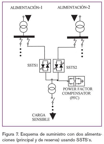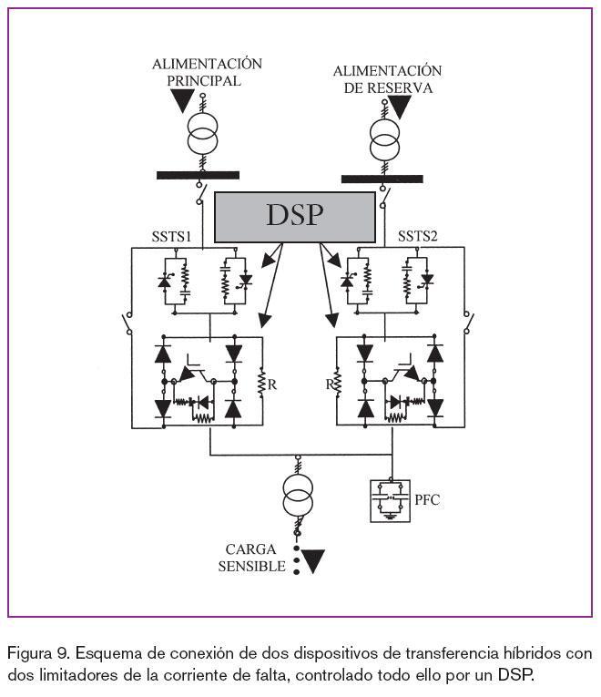 El interruptor de transferencia a base de semiconductores de potencia (SSTS o HSTS) es uno de los dispositivos más útiles para la mejora de la calidad de potencia. Como se ha indicado anteriormente, estos dispositivos están constituidos por tiristores (SCR´s), o bien por IGCT´s, montados en antiparalelo. Por otra parte, las configuraciones híbridas con un interruptor mecánico rápido permiten reducir las pérdidas de conducción. No obstante, el poder disponer de elementos que permitan reducir las corrientes de falta resulta de gran interés práctico.