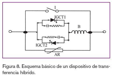 Un sistema de transferencia híbrido se compone, básicamente, de dos IGCT´s en antiparalelo con su protección, una bobina (B) para facilitar la conmutación de los IGCT´s y, en paralelo con este conjunto, un interruptor mecánico (I) y un AR (Zinx Oxide Surge Arrester) (figura 8).