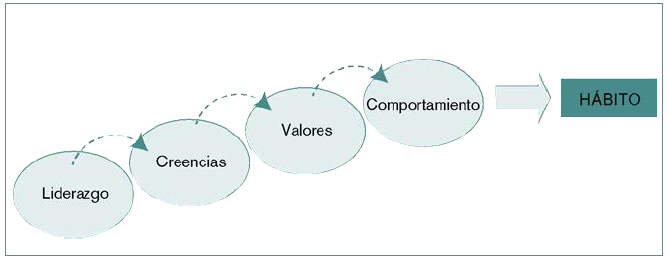 Por tanto, para cambiar un hábito –la gran mayoría muy arraigados dado que los aprendemos desde la infancia – es necesario un cambio en las creencias, lo que supone un cambio profundo. Para este proceso de cambio hay que utilizar el liderazgo como herramienta teniendo en cuenta que las creencias no se pueden eliminar, pero se pueden cambiar por otras, dado que el ser humano necesita las creencias dentro de su modo de vida y en todos sus ámbitos.