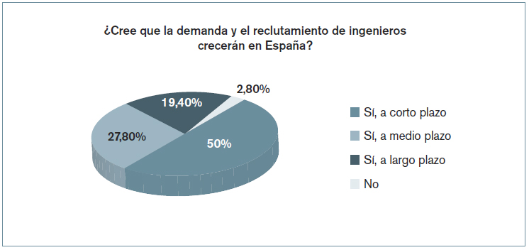 Por su parte, las empresas se muestran también optimistas en lo que concierne al regreso a España de los ingenieros expatriados. De este modo, el 70% de ellas piensa que los profesionales españoles retornarán a medio o largo plazo.