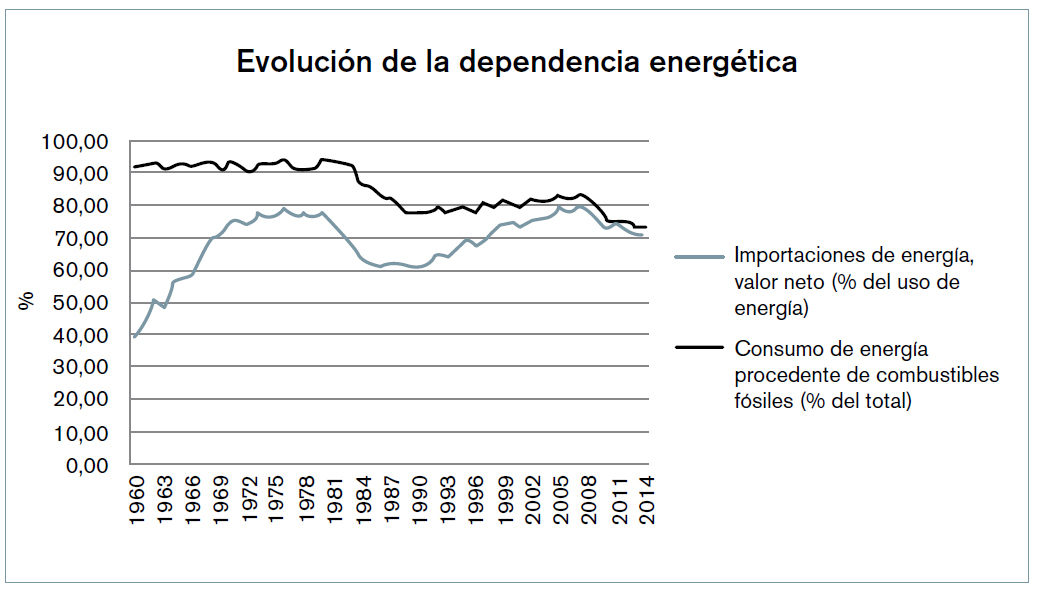En este artículo se analizará uno de los grandes problemas que presenta el sistema energético español, que es la gran dependencia energética, y que conforme a los datos extraídos del Ministerio de Industria, Energía y Turismo se encontraba en el año 2014 en el 70,61%, frente a la media de la UE, que está en el 53%. Este hecho presenta una influencia muy negativa en nuestra balanza de pagos con el exterior y, por tanto, un desequilibrio en nuestra capacidad de endeudamiento, en el riesgo país (prima de riesgo) y, por supuesto, un alto coste económico para financiar esas importaciones.
