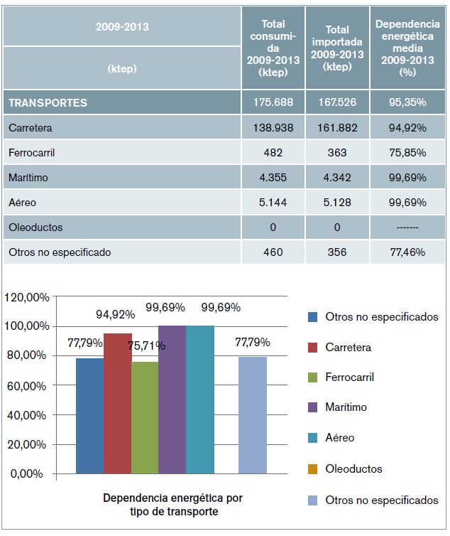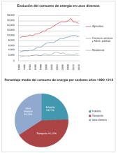 Para el correcto análisis de la dependencia energética, es importantísimo realizar un estudio pormenorizado de las fuentes de energías consumidas y el uso al que se destinan las mismas. En este caso se han analizado los tres grandes sectores de consumo energético como son el industrial, el transporte y el de usos diversos, en el que estarán incluidos agricultura, pesca, comercio, servicios y Administraciones públicas, residencial y otros, y de esta forma se conocerá cuál es la dependencia energética media de cada uno de ellos. Para ello, se utilizará el estudio realizado por el IDAE de los balances de energía final por sectores y fuentes de energía con los datos de los años entre 2009 y 2013, para tener una muestra significativa.