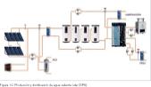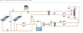 Pero también existe la posibilidad de aprovechar todo el salto de temperatura del campo solar para cubrir la demanda de varios puntos de consumo al mismo tiempo. En la figura 12 se puede observar un esquema del circuito primario del SP4. En esta instalación, todos los puntos de consumo se encuentran conectados al circuito primario solar, ordenados de mayor a menor demanda de temperatura, de tal forma que la salida de uno de los puntos de consumo puede utilizarse como entrada del siguiente.