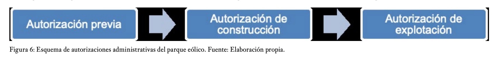 La normativa actual establece que el parque eólico tiene tres autorizaciones, que se pueden ver en el siguiente cronograma (Fig. 6).