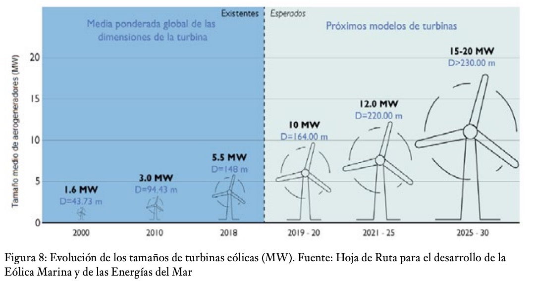 Hasta hace unos años la energía eólica offshore tenía un límite en la profundidad de la plataforma oceánica en unos 50 metros, por lo que no era apta para España; el desarrollo de tecnologías de plataformas offshore flotantes dotadas de aerogeneradores permite elevar esta profundidad hasta unos 1.000 metros, por lo que podrían instalarse miles de aerogeneradores en la costa española que producirían miles de GWh de energía eléctrica, bien para su vertido a la red o para la fabricación de hidrógeno como vector de almacenamiento energético.